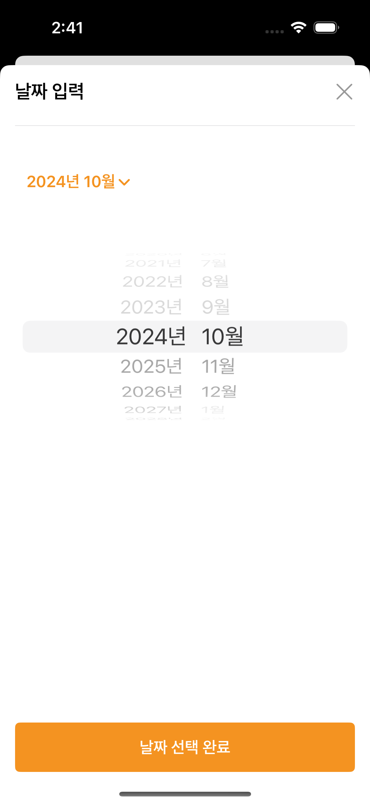 DatePicker("날짜를 선택해주세요", selection: $selectDate, in: Date()..., displayedComponents: .date)