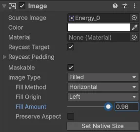 - Fill Amount로 에너지처럼 이미지 변경 가능