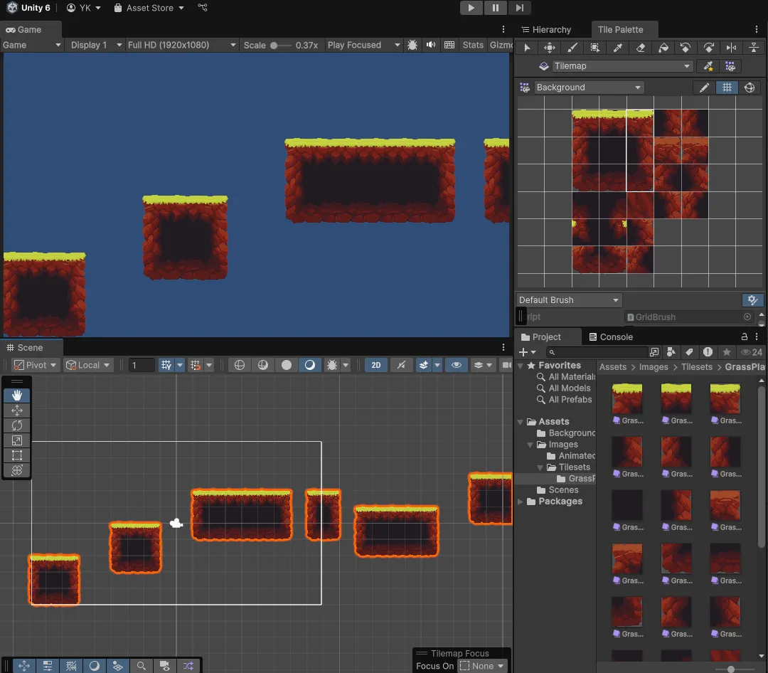 - 이렇게 설정한 후Tile Palette의 빈공간에 넣어줌