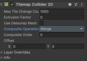 - Composite Collider 2D 추가하시고 Tilemap Collider에서 Merge 선택
