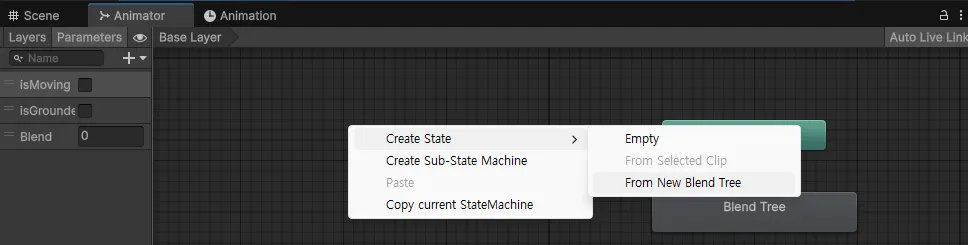 Blend Tree (두 개 이상 애니메이션 합쳐서 사용)
