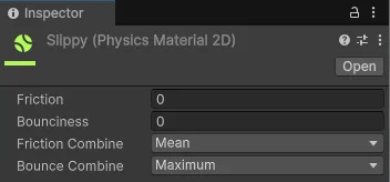 Friction 0으로 한 후 Rigidbody에 넣어줌