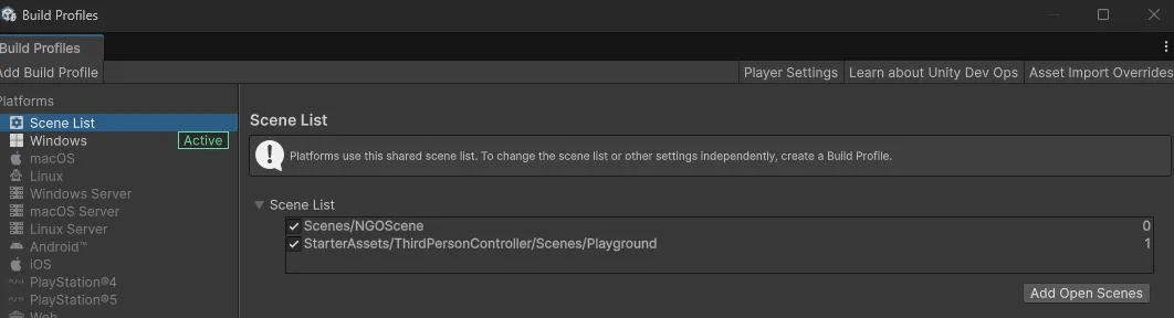 - Build Profiles에 Playground 씬 추가